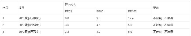 管材的靜液壓強度應符合表10要求。